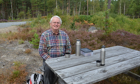 På bilden sitter Sven tillsammans med Olle (som tar bilden) och fikar. Detta tillfälle är perfekt för Olle och Sven att fånga upp varandras intentioner och ambitioner med skogen. Sven har lagt stor vikt vid att ha välskötta skogsvägar, vilket underlättar och sparar mycket tid åt både honom och entreprenörer som slipper gå långa sträckor till aktuella skogsområden.